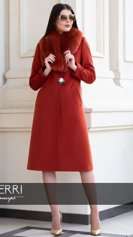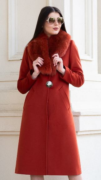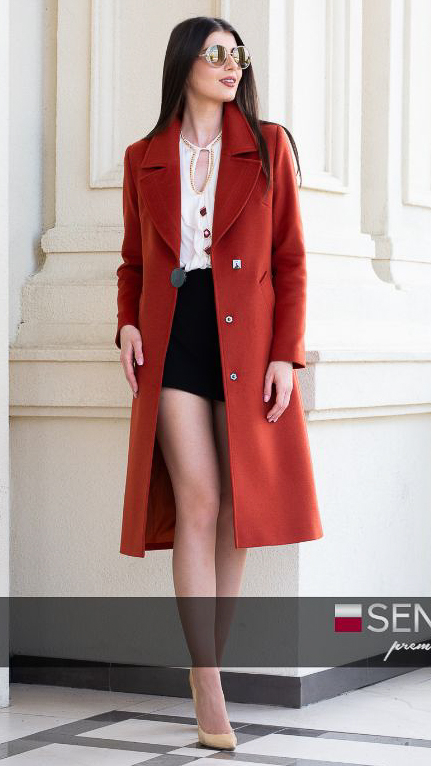 Palton de lână, fără blană naturală Sentierri 835 teracota