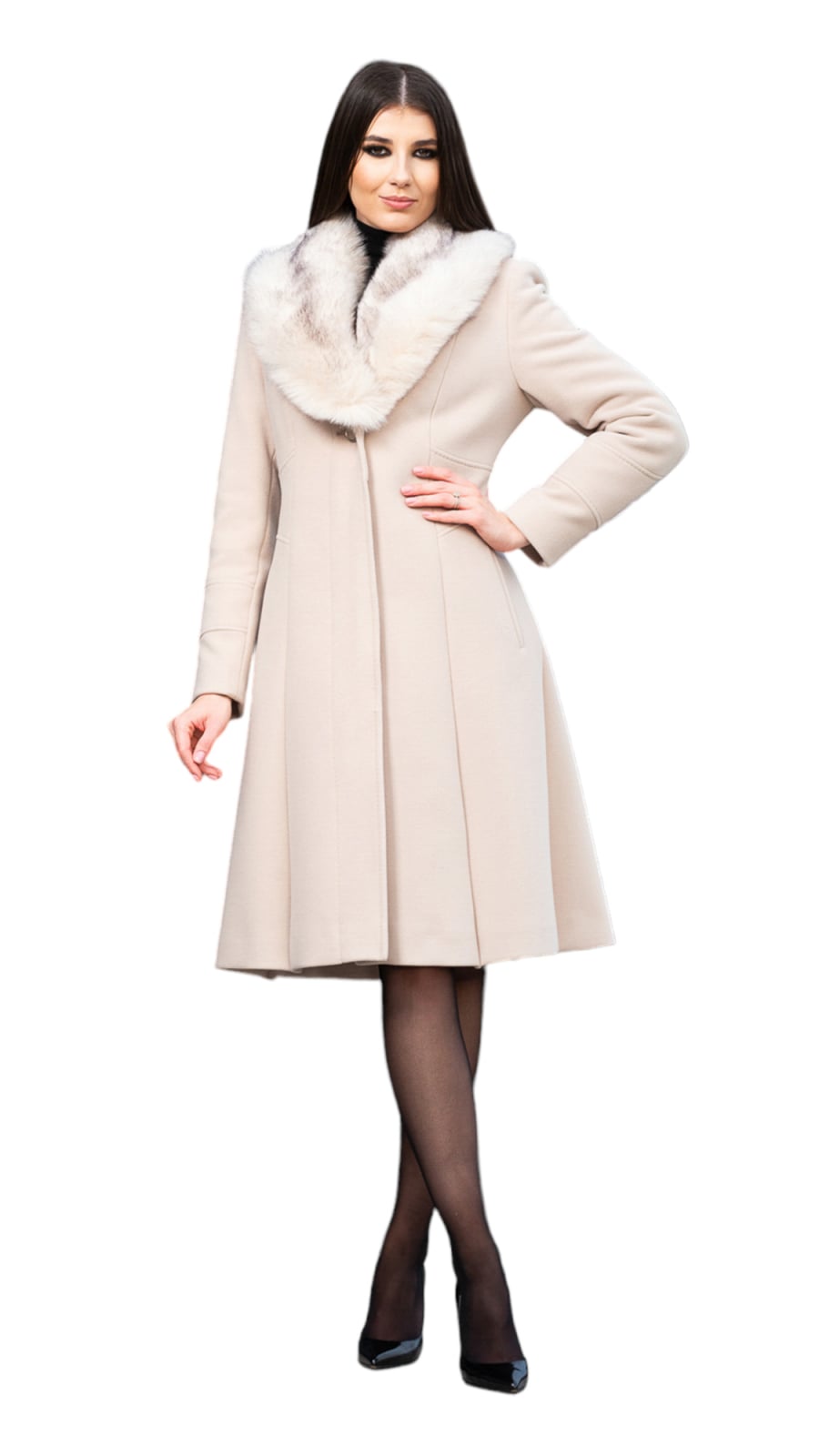 Sentierri Palton de lână si blană vegană Sentierri 804 bej