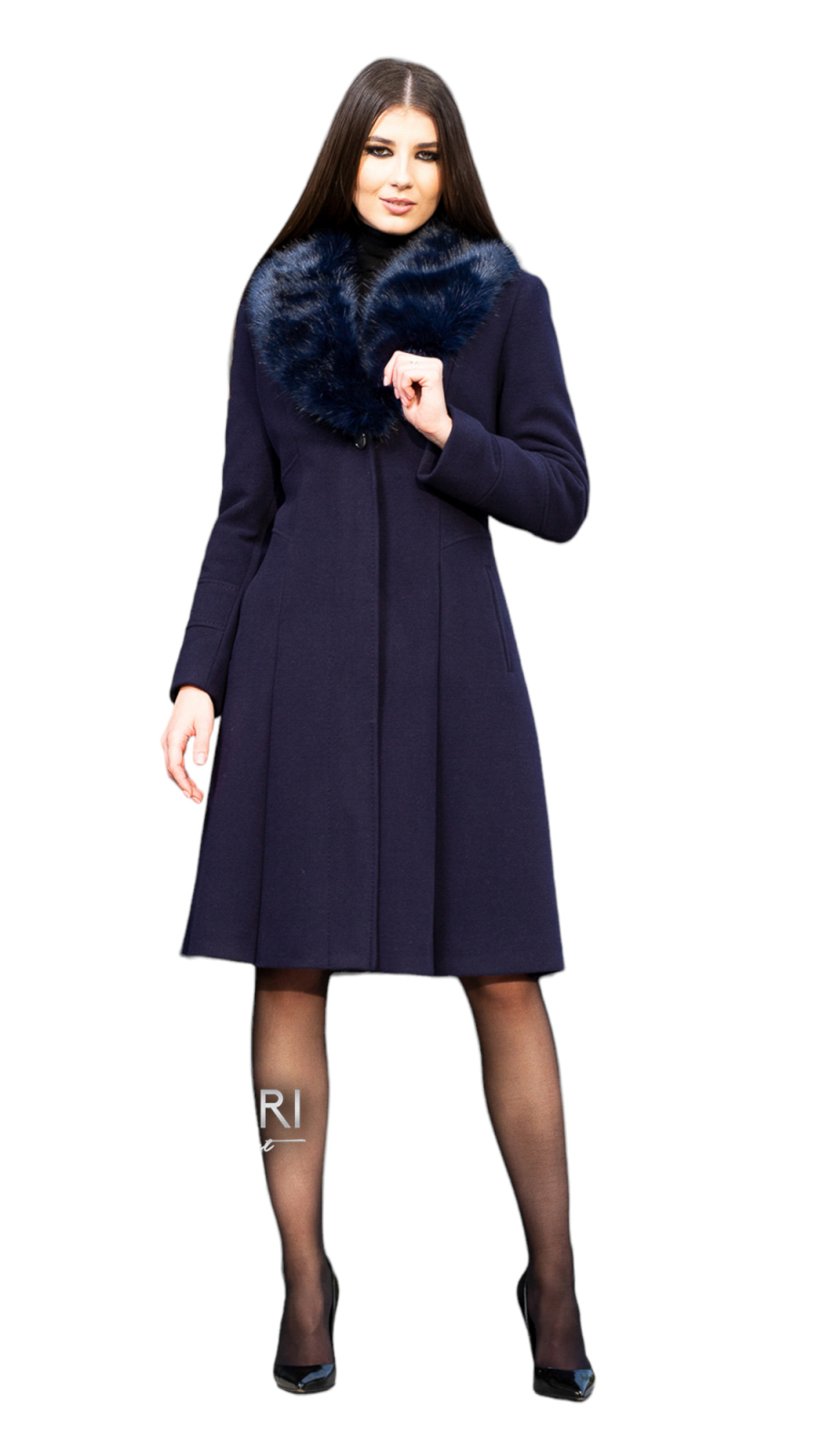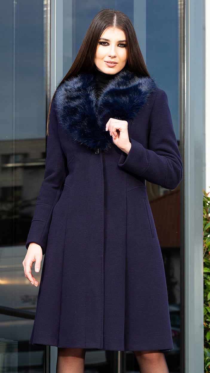 Palton de lână si blană vegană Sentierri 804 bleumarin