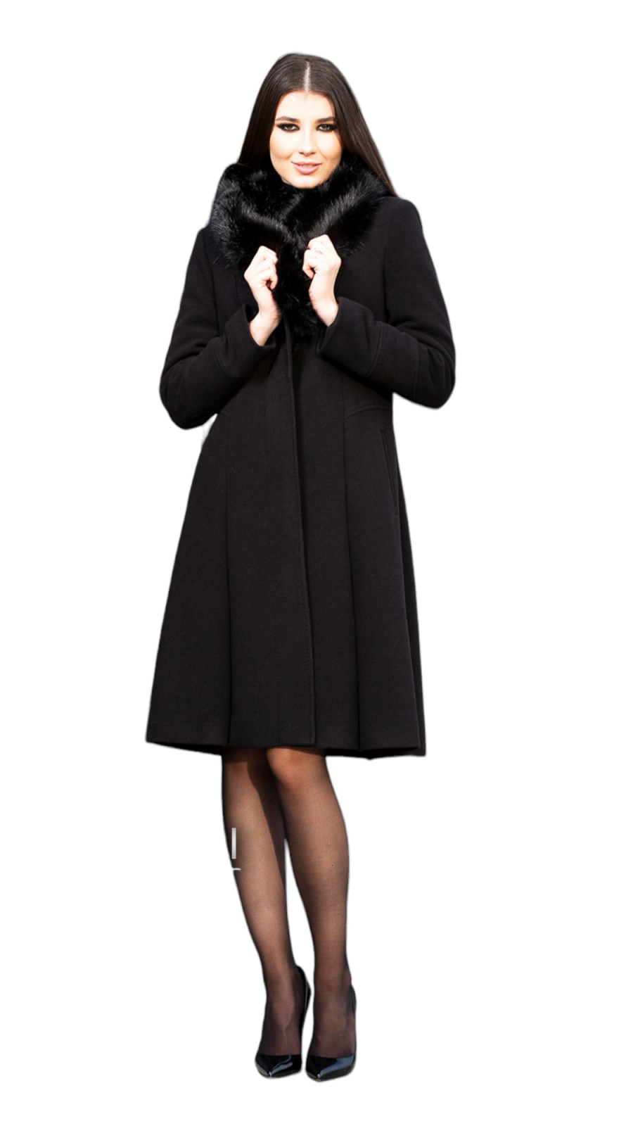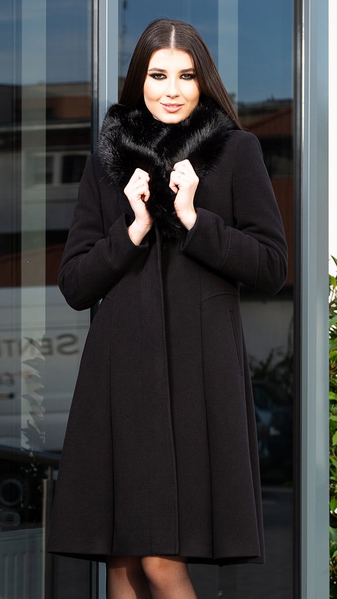 Palton de lână si blană vegană Sentierri 804 negru