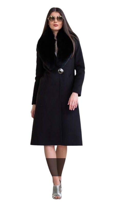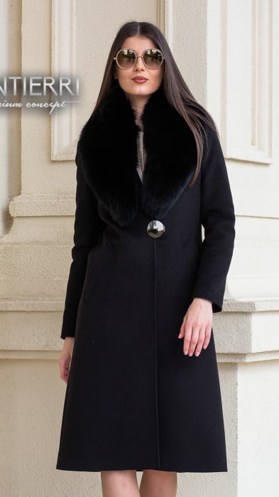 Sentierri Palton de lână si blană vegană Sentierri 835 negru