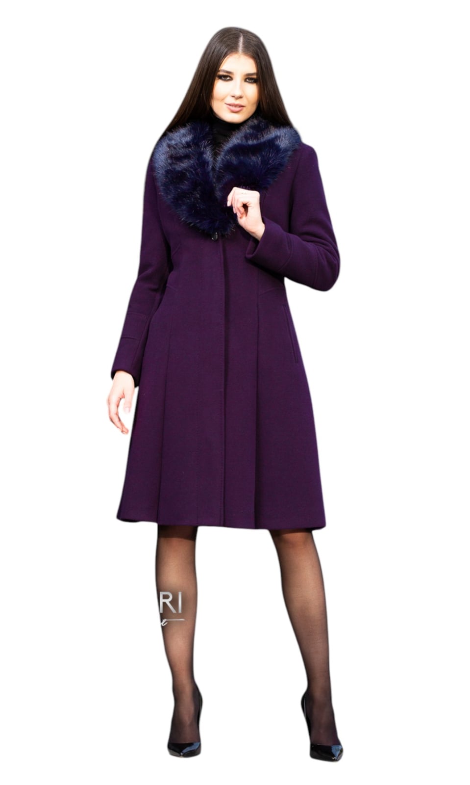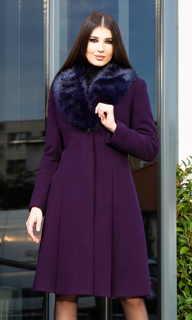 Palton de lână si blană vegană Sentierri 804 mov-pruna