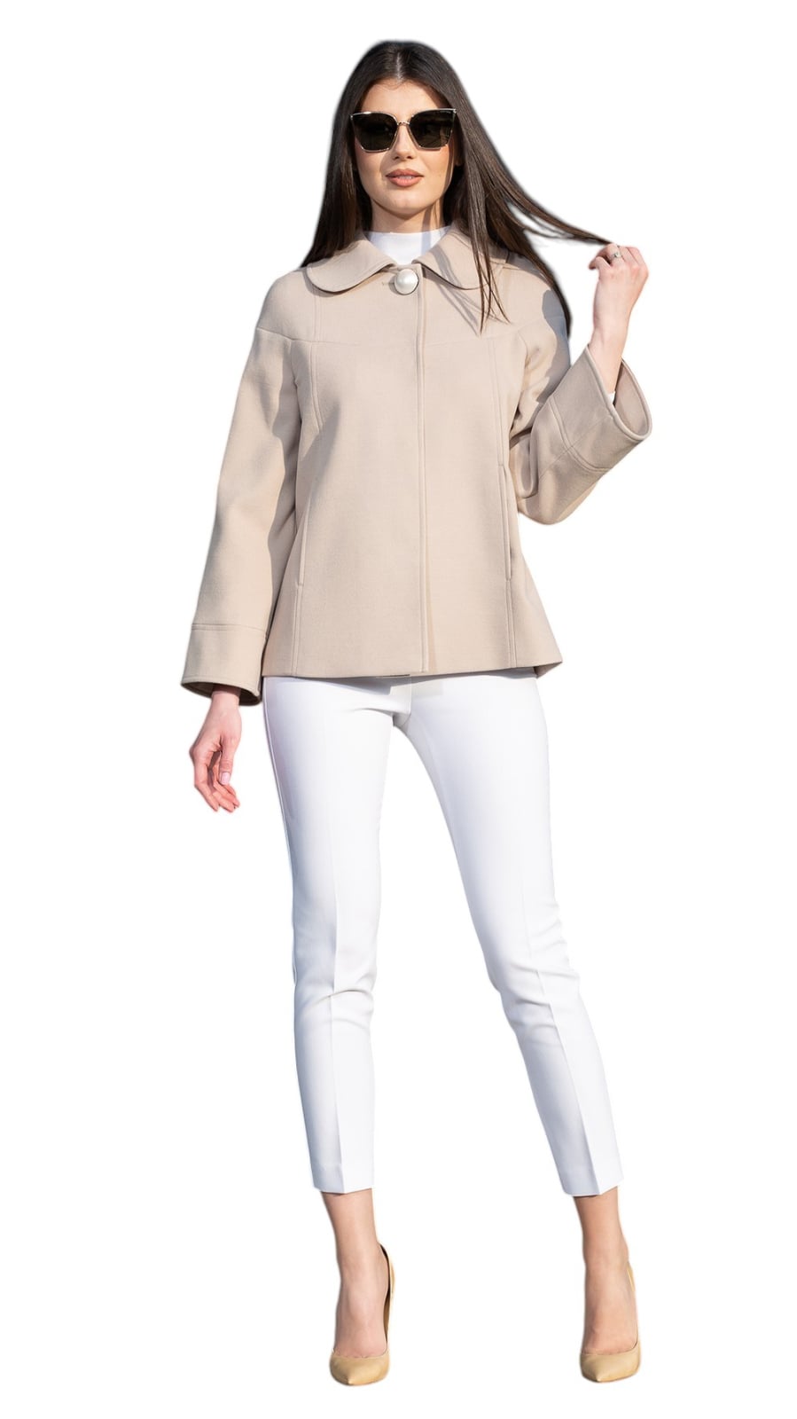 Palton de lână Sentierri 830 scurt bej
